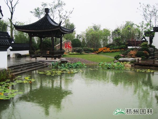 第二屆中國綠化博覽會之杭州園,又名“緣園”。以西湖美麗的傳說《白蛇傳》為設(shè)計脈絡(luò),將故事提煉成斷橋相逢、同心定緣、平湖秋月、雷峰夕照四個精華部分,融入到工程綠化作品中,運(yùn)用多桿叢生植物和木本花境為造景元素,平臺、小橋、埠頭、沙灘、景石,勾勒水鄉(xiāng)風(fēng)韻;粉墻、黛瓦、圓門、方亭、水榭,追憶江南情懷,由此達(dá)到了景中有情、情中有景,用園林綠化的丹青妙筆描繪出一幅情景交融的江南風(fēng)情畫卷。漫步緣園,仿佛回到千年前的西湖:風(fēng)景如畫、才子佳人、江南煙雨、風(fēng)光旖旎,斷橋之上,許仙與白娘子洋溢纏綿悱惻的浪漫愛情傳奇……