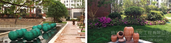 更值得一提的,還有隨處可見的草坪,隨著道路的延伸,草坪時(shí)而在不同的植物組團(tuán)四周鋪展,時(shí)而與一棵棵高大的香樟、無患子為鄰,間或在小廣場(chǎng)的四周漫生一片綠意。大面積的草坪應(yīng)用,使得小區(qū)就像坐落在一片綠色的地毯中,映著白墻紅瓦的建筑,更顯綠意濃濃。不經(jīng)意見,更見幾只高低不一的紅陶瓷罐隨意散落在草坪里,在陽光的照耀下,泛出溫潤(rùn)的光澤,一段靜謐的時(shí)光,仿佛就這樣凝固了。