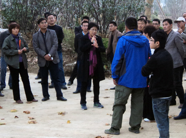 云龍湖珠山景區(qū)工程是徐州市2011年的一項(xiàng)重點(diǎn)綠化工程,李局長對該項(xiàng)目一直非常關(guān)心和重視,繼9月23日陪同市委書記曹新平視察工地之后,此次,園林局又組織幾個(gè)重點(diǎn)景觀工程的項(xiàng)目經(jīng)理和主要負(fù)責(zé)人來工地觀摩指導(dǎo),察看工程進(jìn)度。在工地現(xiàn)場,李局長邊走邊看,并不時(shí)詢問。當(dāng)行至榆樹下沉廣場時(shí),李局特別指出此處的整體布局、植物配置、景石擺放等都很合理,很有特色,為工程效果增色不少,并提出新的指示,希望我方能夠再接再厲,精益求精,將該項(xiàng)目打造成徐州2011年的一項(xiàng)精品工程。