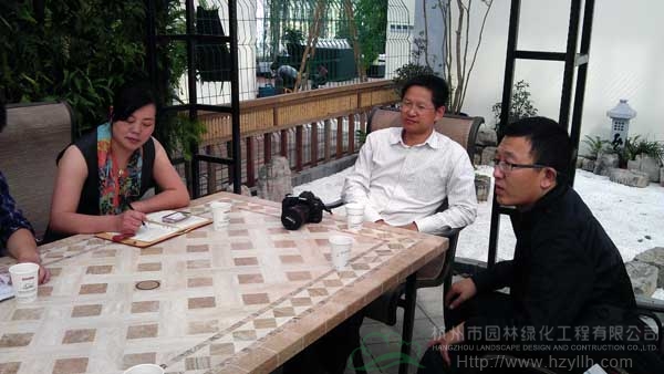 呂順清博士(中)、胡紅云女士(左)一行與花園中心徐偉峰、趙榮芳等進(jìn)行交流