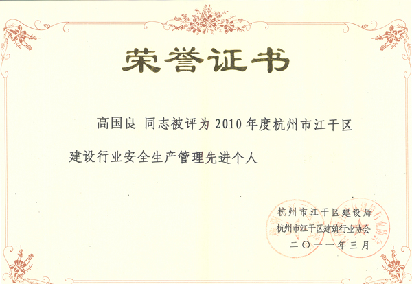 會(huì)議旨在總結(jié)經(jīng)驗(yàn),表彰先進(jìn),現(xiàn)場(chǎng)宣讀了一批在2010年為江干區(qū)經(jīng)濟(jì)發(fā)展做出突出貢獻(xiàn)的建筑企業(yè)和個(gè)人名單,并頒發(fā)了獎(jiǎng)牌和證書。其中,公司被評(píng)為“2010年度杭州市江干區(qū)城市園林綠化優(yōu)秀企業(yè)”,成為上榜的七家企業(yè)之一;公司工程總監(jiān)、市政分公司副總經(jīng)理高國(guó)良被評(píng)為“2010年度杭州市江干區(qū)建筑行業(yè)安全生產(chǎn)管理先進(jìn)個(gè)人”。