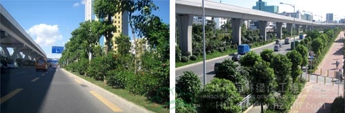 如今,開(kāi)車(chē)行進(jìn)在這條道路上,干凈整潔的路面、開(kāi)闊通透的視野、清新自然的景觀,給人帶來(lái)閑適、愜意的感覺(jué)。“以人為本,尊重自然”的綠化理念,體現(xiàn)在景觀中的每個(gè)細(xì)節(jié);自然環(huán)境與城市環(huán)境的密切結(jié)合,使高架橋的道路通行功能與橋下中央綠化帶的生態(tài)功能有機(jī)融合。整條道路,不僅體顯出深圳這個(gè)濱海大都市獨(dú)有的景觀特色,更彰顯出這個(gè)城市的生機(jī)活力與熱情奔放。