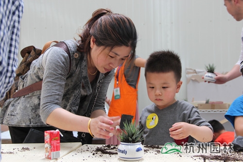參觀完室內(nèi)賣場,所有小朋友和家長們來到了親子操作間,這里,有為他們準備好的多肉植物、盆器、營養(yǎng)土、裝飾品等??吹竭@些漂亮可愛的物品,大家都表現(xiàn)出了極大的興趣,在園藝師的帶領下,迫不及待地開始了組盆活動??鞓返臅r光過得真快,經(jīng)過小朋友們和父母通力合作,拼出了一件件漂亮的小盆栽,心滿意足地帶回家去。