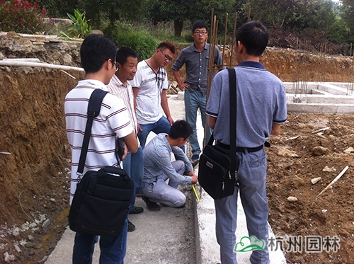 目前,安吉項目部按照施工進度計劃已完成了售票房、公廁、山門、入口亭子、攝香居庭院等的基礎結構施工。檢查組一行到項目部后,先對施工現(xiàn)場進行了全面細致的檢查,指出了存在的問題,同時將正確的操作程序對施工人員進行詳細講解,要求施工人員嚴格按規(guī)范操作,保證工程質量。接著,工程管理部、成本部和財務部對項目部進行交底工作,并提出相應的要求。