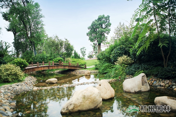 該項目的景觀工程施工總面積21.5萬平方米,分兩個標(biāo)段進行。其中,一標(biāo)段施工面積13萬平方米,由杭州市園林綠化股份有限公司承建。施工內(nèi)容包括:綠化種植、土建施工、景觀小品、水景、景觀建筑、給排水系統(tǒng)及景觀照明系統(tǒng)等工程。自2012年6月開工,至2013年5月竣工,歷時近一年。