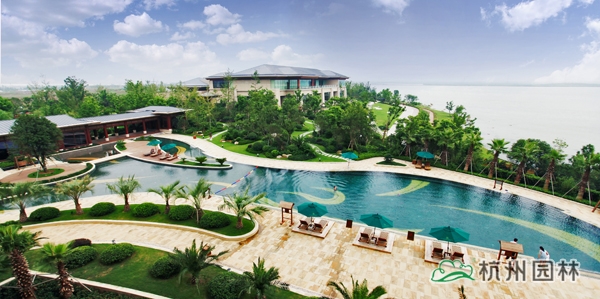 如今,走進吳江東太湖溫泉度假酒店,開闊大氣的入口景觀,整齊劃一的行道樹,道路兩側(cè)花境式的植物組團,首先帶給人一種高端、原生態(tài)的感覺。隨著蜿蜒的園路不斷延伸,更多的園林美景一一呈現(xiàn):開闊的草坪起伏有致,自然式的花境布置清新雅致,造型獨特的黑松、女貞盡顯莊嚴(yán)華貴,婚禮草坪處處充滿浪漫氣息,露天泳池彌漫著濃郁的熱帶風(fēng)情,溫泉泡池區(qū)懷舊氣息撲面而來,湖邊的觀景平臺則將自然美景盡收眼底……大氣中盡顯華貴雍容,細節(jié)中隨處可見精致品味,文化氣息處處流轉(zhuǎn),自然美景比比皆是,園林與建筑渾然一體?!半m由人作,宛自天開”,是對該項目最凝煉的贊譽。