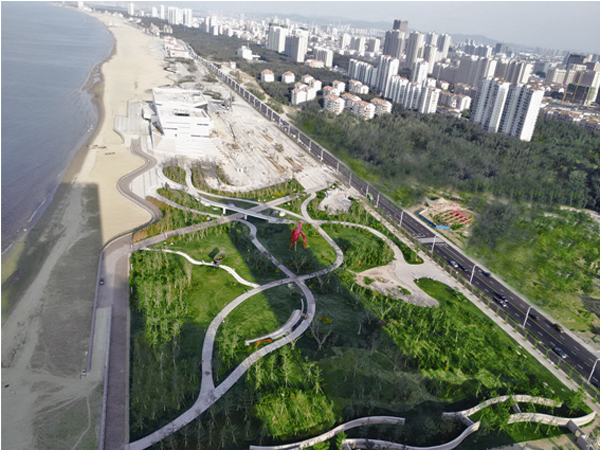 煙臺(tái)屬暖溫帶季風(fēng)氣候,但是瀕海地又受到海洋性氣候的影響,經(jīng)常受海潮海風(fēng)侵襲和土壤鹽漬化、干旱化威脅,導(dǎo)致適宜生存的植物種類(lèi)少、綠化難度大。該項(xiàng)目緊臨海邊,因此,如何正確選擇植物品種,在提高植物成活率的同時(shí)又保證景觀效果的豐富,是其面臨的一大難題。