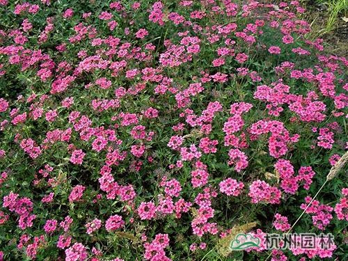 美女櫻,其姿態(tài)優(yōu)美,花色豐富,色彩艷麗,盛開時如花海一樣,令人流連忘返。美人櫻株叢矮密,花繁色艷,開花部分呈傘房狀,花色有白、紅、藍、雪青、粉紅等,花期為5-11月。喜陽光、不耐陰,較耐寒、耐蔭差、不耐旱。花期可噴磷酸二氫鉀,促進花開放。
