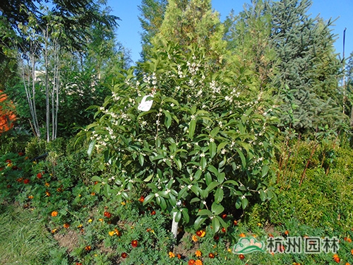 花博會開放時間是9月份,為配合開園需要,根據(jù)不同植物的開花特性及要求,采取相應(yīng)的措施,確保植物的最佳觀賞效果。桂花是杭州市市花,是集綠化、美化、香化于一體的優(yōu)良園林樹種,一般在仲秋時節(jié)綻放,“浙江園”的桂花全部精選自杭州畫境種業(yè)有限公司,提前運送至銀川之后,利用當?shù)氐牡蜏丨h(huán)境誘使其完成花芽分化,在開園時營造了桂花滿樹、滿園飄香的氛圍。八仙花又名繡球,花大色美,是長江流域著名觀賞植物,在明、清時代建造的江南園林中就栽有八仙花。特別是八仙花‘無盡夏’具有多次開花的特點,項目人員通過修剪、培育,促進其花芽的再次分化,使展園內(nèi)的八仙花處于生長繁茂、花團錦簇的良好狀態(tài)。此外,還結(jié)合公司“一種紅楓快速成景方法”等專利,運用摘葉等形式促進槭樹科植物萌發(fā)新葉,為九博會的開幕增添新的色彩。