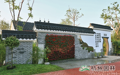 考慮到銀川的干燥氣候,垂直綠化墻植物的保濕成為難題。“浙江園”垂直綠化墻以無紡布為墻體材料,使用保濕性強的基質(zhì),優(yōu)選植物種類,同時搭配滴灌系統(tǒng),保證了綠化墻鮮花擁簇的景象。展園內(nèi)的垂直綠化墻設(shè)計簡潔、曲線優(yōu)美,與以錢塘江文化為主題的背景墻相互映襯,共同展現(xiàn)了新時期浙江園林景觀的不斷發(fā)展與創(chuàng)新。