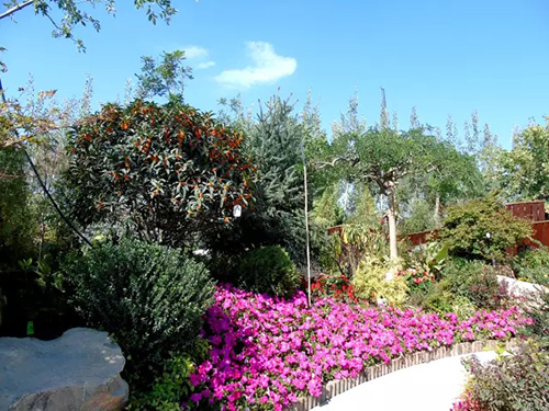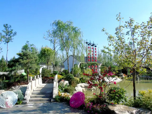 花博會(huì)開放時(shí)間是9月份,為配合開園需要,根據(jù)不同植物的開花特性及要求,采取相應(yīng)的措施,確保植物的最佳觀賞效果。桂花是杭州市市花,是集綠化、美化、香化于一體的優(yōu)良園林樹種,一般在仲秋時(shí)節(jié)綻放,“浙江園”的桂花全部精選自杭州畫境種業(yè)有限公司,提前運(yùn)送至銀川之后,利用當(dāng)?shù)氐牡蜏丨h(huán)境誘使其完成花芽分化,在開園時(shí)營(yíng)造了桂花滿樹、滿園飄香的氛圍。八仙花又名繡球,花大色美,是長(zhǎng)江流域著名觀賞植物,在明、清時(shí)代建造的江南園林中就栽有八仙花。特別是八仙花‘無盡夏’具有多次開花的特點(diǎn),項(xiàng)目人員通過修剪、培育,促進(jìn)其花芽的再次分化,使展園內(nèi)的八仙花處于生長(zhǎng)繁茂、花團(tuán)錦簇的良好狀態(tài)。此外,還結(jié)合公司“一種紅楓快速成景方法”等專利,運(yùn)用摘葉等形式促進(jìn)槭樹科植物萌發(fā)新葉,為九博會(huì)的開幕增添新的色彩。