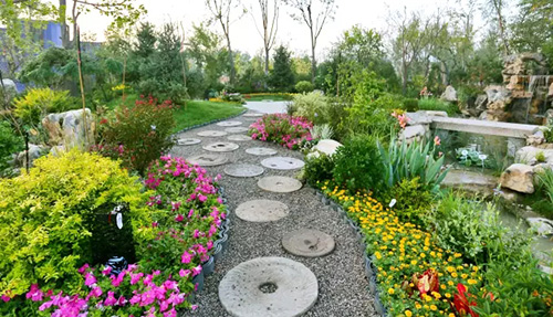 海綿城市是指城市能夠像海綿一樣,在適應(yīng)環(huán)境變化和應(yīng)對(duì)自然災(zāi)害等方面具有良好的“彈性”,下雨時(shí)吸水、蓄水、滲水、凈水,需要時(shí)將蓄存的水釋放并加以利用。展園內(nèi)采用碎石鋪就的“茶馬古道”,既能有限地補(bǔ)充地下水,又有一定的地表徑流削減作用。另外,園內(nèi)水池邊設(shè)置植被緩沖帶,通過植物攔截及土壤下滲作用有效減緩地表徑流流速,并去除徑流中的部分污染物,體現(xiàn)了海綿城市理念的截污凈化功能。