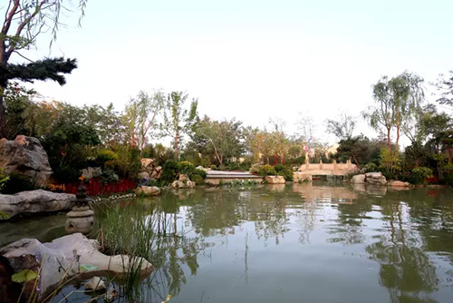 “浙江園以‘浙?鄉(xiāng)?綢’為設(shè)計(jì)主題,采用傳統(tǒng)浙江園林造景手法,以寫意的自然山水,展現(xiàn)浙江獨(dú)特的水網(wǎng)密布的地理地貌、小橋流水的江南韻味以及水鄉(xiāng)的蠶、茶文化,詮釋‘夢(mèng)回江南、絲路通商’的概念,力求打造‘良渚源、蠶茶鄉(xiāng)、古韻風(fēng)、新思路’的歷史情境,巧妙植入園林新技術(shù)、新工藝、新品種,展示‘越溪浣紗、陌上錦霞、古道尋遺、煙氣汀州、絲路新語’等現(xiàn)代浙江園林景觀新風(fēng)貌?!笔┕がF(xiàn)場(chǎng)負(fù)責(zé)人方禮銀將“浙江園”的設(shè)計(jì)理念娓娓道來。