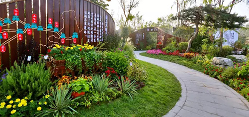 考慮到銀川的干燥氣候,垂直綠化墻植物的保濕成為難題?!罢憬瓐@”垂直綠化墻以無紡布為墻體材料,使用保濕性強(qiáng)的基質(zhì),優(yōu)選植物種類,同時(shí)搭配滴灌系統(tǒng),保證了綠化墻鮮花擁簇的景象。展園內(nèi)的垂直綠化墻設(shè)計(jì)簡(jiǎn)潔、曲線優(yōu)美,與以錢塘江文化為主題的背景墻相互映襯,共同展現(xiàn)了新時(shí)期浙江園林景觀的不斷發(fā)展與創(chuàng)新。