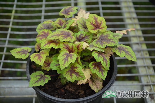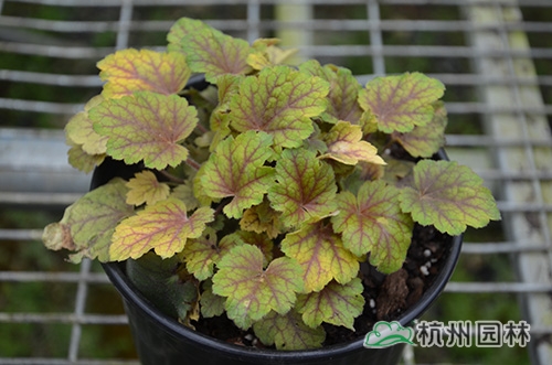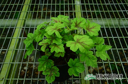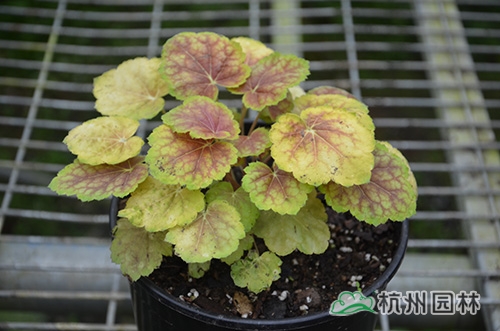 礬根葉形也變化多樣,基部心形或楔形,掌狀淺裂至深裂,邊緣波狀,淺根系,葉基生,花期一般為4~10月,花很小,呈鐘狀,兩邊對稱。幼苗長勢緩慢,成苗后生長旺盛。綠期長,能夠在-15℃以上的溫度下生長。具有喜半蔭、耐全光、耐旱性和耐寒性強等生理特點。適宜富含腐殖質(zhì)的土壤。喜中性偏酸,適宜的PH值為5.8~6.2,能夠在傾斜地方生長。冬季不落葉,枝葉生長稠密,株型圓整,覆蓋性強,花和葉都比較漂亮。