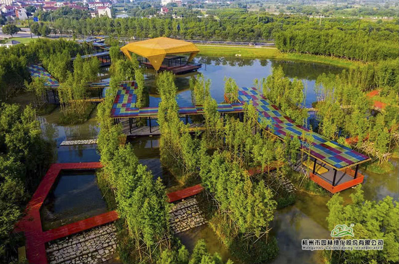 蘭溪市揚(yáng)子江綠道長10公里,是杭州市園林綠化股份有限公司承建的揚(yáng)子江生態(tài)公園中的一部分。綠道分為騎行綠道和景觀漫步綠道兩大部分,其中,騎行綠道沿公園兩側(cè)分布,鋪裝材料為透水混凝土;景觀漫步綠道圍繞園內(nèi)水系蜿蜒而行,鋪裝材料采用清水預(yù)制混泥土板。