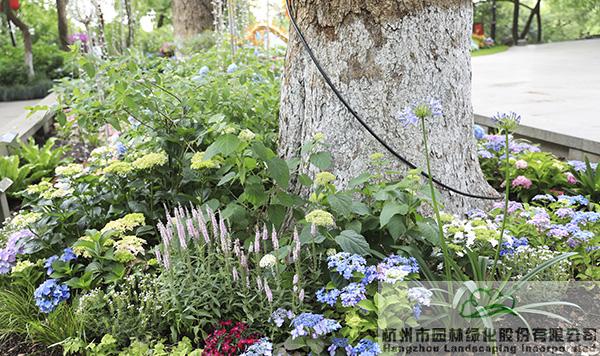作為本次活動的贊助單位,杭州市園林綠化股份有限公司聯(lián)手繡球花產(chǎn)業(yè)國家創(chuàng)新聯(lián)盟,在城隍閣古樹平臺布置了《花落花開,年華度》為主題的八仙花景觀展示區(qū),“閣樓觀湖二十年,繡球花燈滿堂前”,通過代表浪漫與愛情之美的繡球花境組團(tuán),結(jié)合錯落有致的景觀挑燈和蜿蜒向前的時(shí)間軸序,營造出繁花如繡、前程似錦的美好寓意,以此向城隍閣開放20周年獻(xiàn)禮。