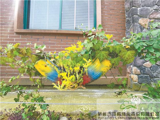 梅秋里的房屋多為兩到三層建筑,但建筑風(fēng)格、外墻立面均有區(qū)別,因此,在進(jìn)行景墻施工時(shí),根據(jù)每家的房屋建筑特色選擇了不同的材料和植物配置手法。如,建筑外立面為紅色的,景墻以紅色磚為主,搭配月季、佛甲草等植物;建筑外立面為灰色的,景墻以淺黃色磚為主,結(jié)合小木樁或仿竹籬笆,搭配石竹、美女櫻等植物;建筑外立面有大理石點(diǎn)綴的,景墻以桐廬石為主,輔以裝飾過的輪胎,點(diǎn)綴佛甲草、常春藤等植物。不同的處理手法,使得家家戶戶的景墻既有連續(xù)性,又有各自的風(fēng)格。
