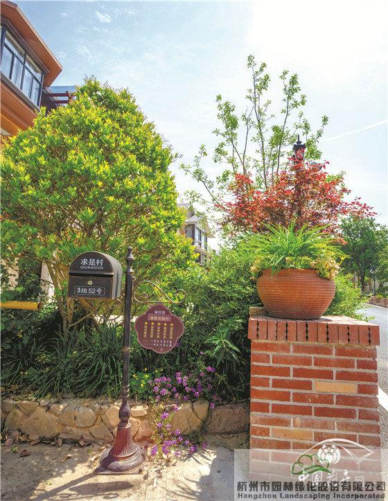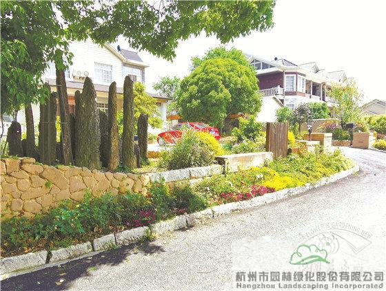 景墻邊的植物配置同樣有講究。利用銀杏、桂花、梅花、紅楓等植物營造上層空間,這些植物具有遮擋作用,能夠?yàn)橥ピ籂I造一定的私密空間。通過樹狀、球狀、攀援、傘狀、字母等各種形態(tài)的月季,金冠女貞球、龜甲冬青球、銀姬小蠟球、藍(lán)莓、八仙花、小葉梔子、翠蘆莉、花葉千鳥花、藍(lán)山鼠尾草、紫葉狼尾草等小喬灌木,在打造中層空間的同時(shí),和美女櫻、金娃娃萱草、花葉玉蟬花、花葉香桃木、紫菀、澤蘭、礬根、五彩絡(luò)石、石竹等下層空間植物一起裝飾和襯托景墻,使家家戶戶的景觀更加豐富多變。