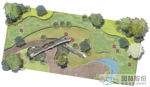 以枯木為主景,種植大灰蘚、細(xì)葉小羽蘚等蘚類(lèi)植物,搭配枝條飄逸的河灘冬青,水波粼粼的淺水塘,打造生態(tài)且富有趣味的苔蘚濕地景觀,周邊小范圍種植花灌木及宿根花卉,增添色彩。