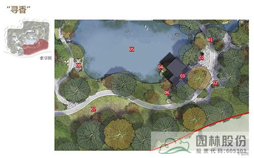 “尋香”片區(qū):圍繞西湖的“桂香、茶香”元素,以湖畔邊的樾香亭為主景展開,與茶藝小品、花境、小徑等元素結(jié)合,打造視覺、聽覺、觸覺等沉浸式景觀,形成繽紛的五感花園。