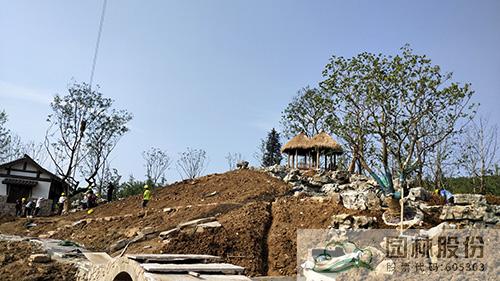 自今年四月份開工以來,杭州園的各項工作進(jìn)展有序。截止目前,主體建筑、水系跌瀑、溪流假山等基本完工,大部分鋪裝已經(jīng)完成,展園景觀風(fēng)貌初見雛形。接下來主要進(jìn)行喬木和大灌木的種植工作。正值夏季高溫時節(jié),為提高樹木的成活率,施工中多措并舉,提前將挑好的大樹進(jìn)行修剪、斷根、噴灑營養(yǎng)液;采用通氣透水的材料包裹土球,進(jìn)行容器假植;制定精細(xì)澆水養(yǎng)護(hù)方案等,使植物清涼度夏,早日綻放風(fēng)華。