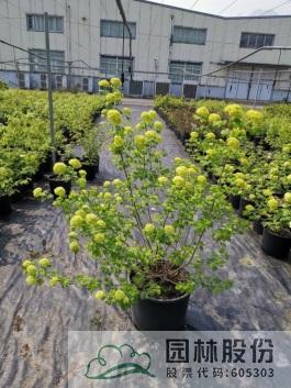 忍冬科莢蒾屬,落葉灌木,高可達4米。葉掌狀,通常三裂,秋季葉色轉(zhuǎn)紅,特別艷麗。聚傘花序白色,不孕花末期會呈現(xiàn)粉色,花徑較大,花藥呈黃色,花期4-5月。果實較大,形似櫻桃,紅艷誘人,給人以強烈視覺沖擊力,能形成園林觀賞的視覺焦點。觀果期長,可達4個月之久。適應(yīng)性強,通常可自然成形。一年施肥3次,早春萌芽前,花后及秋季。適合工程應(yīng)用與庭院觀賞。