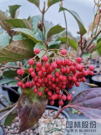 忍冬科莢蒾屬,落葉灌木,高可達3米。葉暗綠色,聚傘花序,單個花序徑較小,花冠白色,花期3-4月。核果球狀卵形,果量大,色彩從黃色漸變成橙色,最后轉(zhuǎn)成紅色,觀果期可長達5月。冬季至早春可修剪。一年施肥3次,早春萌芽前,花后及秋季。該種耐干旱,適合工程應(yīng)用或庭院觀賞。