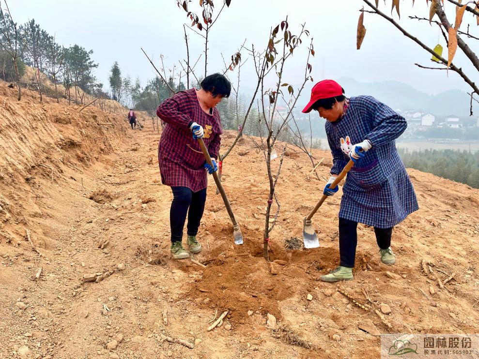櫻花種質(zhì)資源圃規(guī)劃面積20畝,規(guī)劃品種150個,定植櫻花500余棵。本次移栽的櫻花中,品種非常豐富,涵蓋早櫻、陽春櫻、晚櫻等,其中包含園林股份為授權(quán)單位的11個新品種櫻花。研究院副主任魏建芬、邱帥博士長期駐扎施工現(xiàn)場指導工作,針對每一個品種、每一顆苗木數(shù)量進行清點,認真核對種植方位,確保品種不亂、數(shù)量正確。為保障工期,研究院的同事紛紛放棄休假,加班加點投入到項目中來,發(fā)揚一不怕苦、二不怕累的精神,每天奔波在各個山頭之間,為項目的高水平建設(shè)作出積極貢獻。