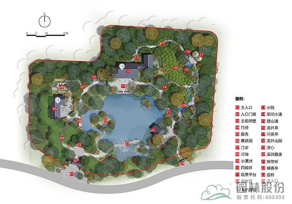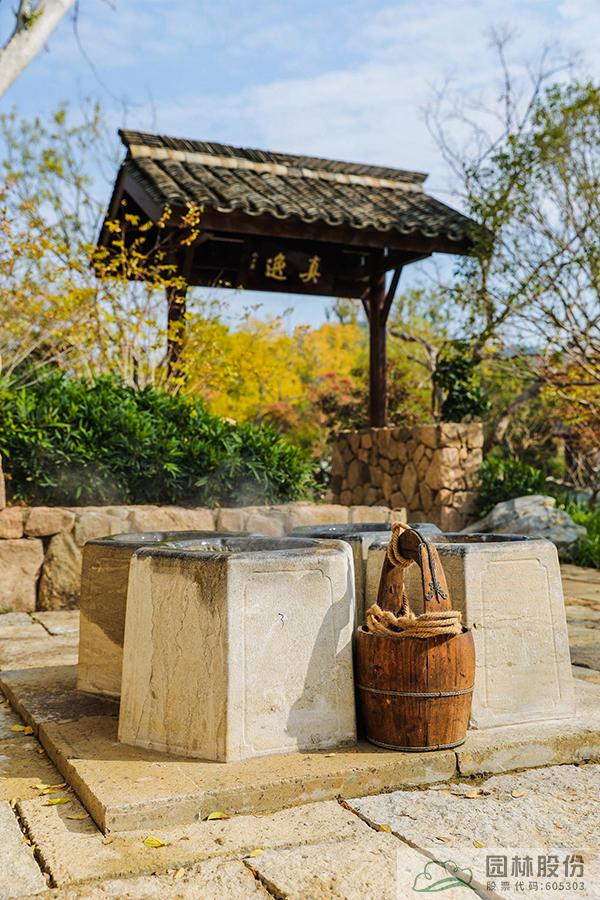 借助場(chǎng)地高差順勢(shì)而為,掇山理水,合理布局,形成了獨(dú)特的“一山、一溪、一湖、一島”的自然山水骨架和“二亭、二橋、二樓(民居)、三門”的建筑格局,通過景序布置、空間轉(zhuǎn)換劃分出五大展區(qū),既符自然之理,又富美感之趣。民居農(nóng)田、茶園竹林、鄉(xiāng)風(fēng)民情在這里融為一體,通過藏、透、回、借、寓等造園手法,從有限到無限,共同組成了天人合一的錢塘人家。
