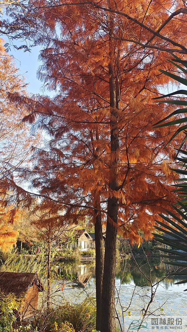 在初冬的日子里,怎能少了水杉、池杉、水松這類落葉針葉樹呢。遠(yuǎn)看,褐色的枝葉、豎向的線條,滿滿的都是初冬的靜謐。如果在林下的園路穿梭,還能看到細(xì)細(xì)密密的落葉灑滿林間,絲絲縷縷的陽(yáng)光灑落進(jìn)來,好希望時(shí)間一直停留在這一刻。