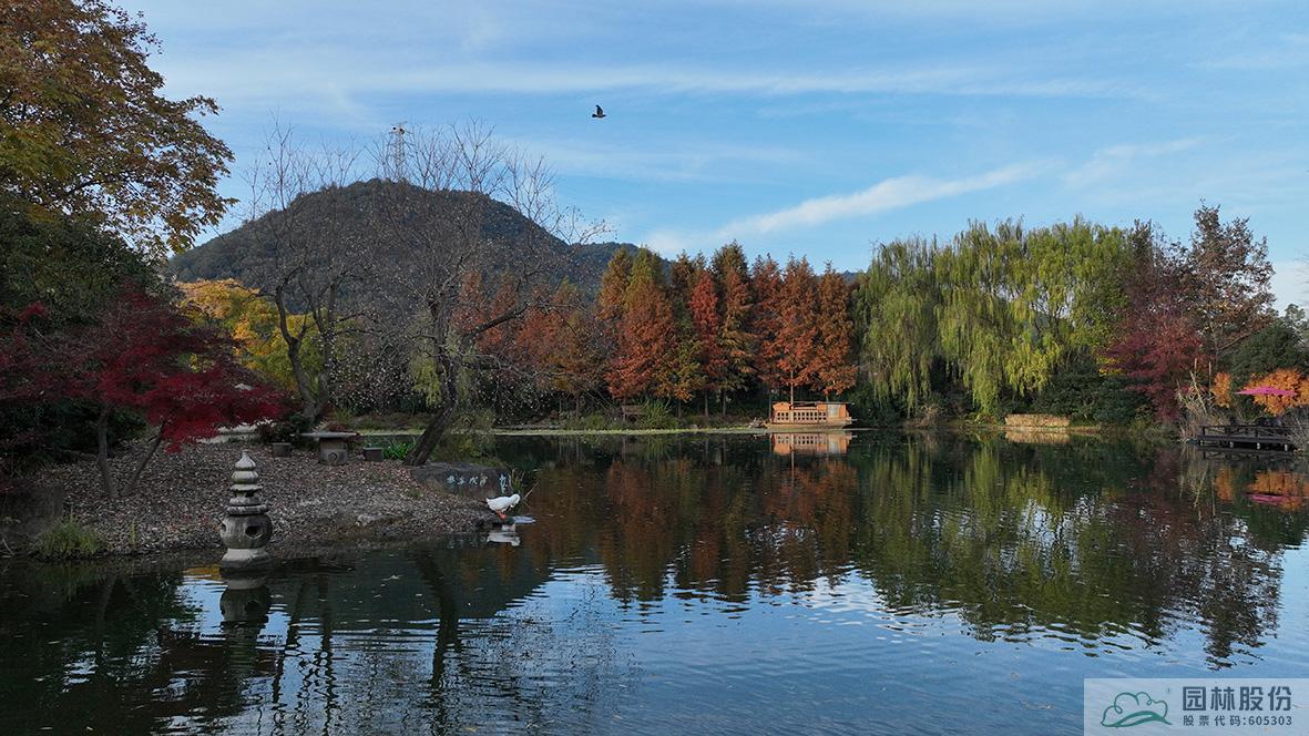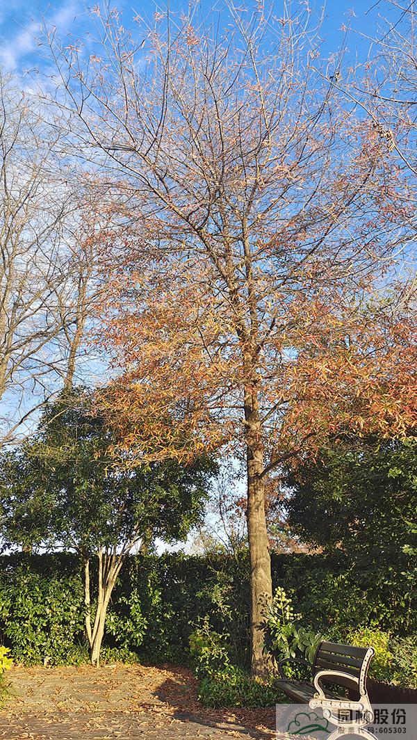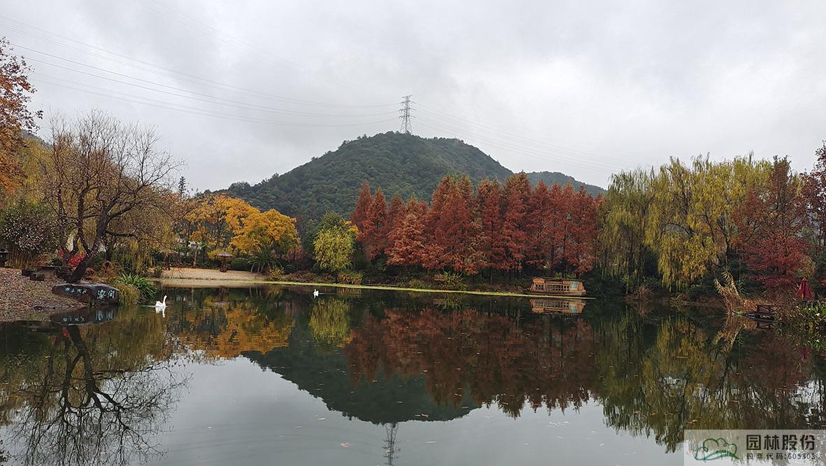 金黃的無患子、絢麗的紅楓、黃紅變換的楓香構(gòu)成了畫境園初冬繽紛世界的三部曲。半島的烏桕、池塘對(duì)岸的水杉水松池杉混交林,則如跳動(dòng)的音符,共同譜寫著初冬的樂章。