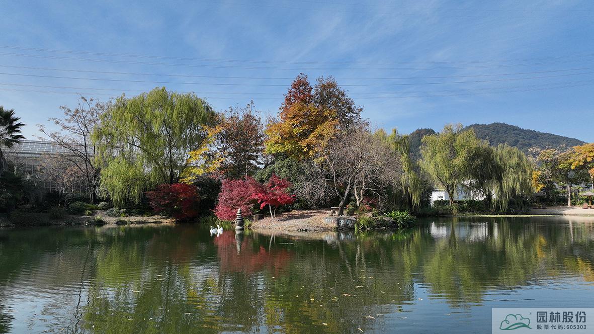 “無楓不成景”。無論是中式庭院、日式庭院,不管在水邊、路邊,紅楓五彩繽紛的葉色,如大自然的調(diào)色盤,渲染出畫境園的初冬。