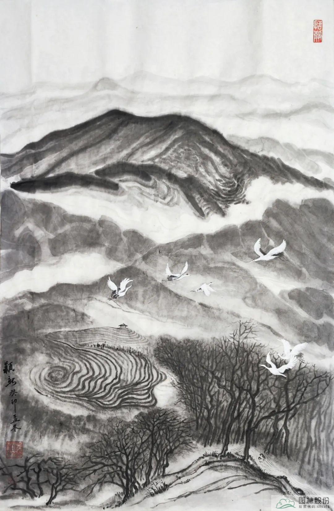 其中,杭州市園林綠化股份有限公司辦公室主任李穎新以徑山美景為創(chuàng)作內(nèi)容的書畫作品成功入選前20名。作品以杭州徑山及國家級美麗休閑鄉(xiāng)村-小古城村的自然景觀、鄉(xiāng)村風(fēng)情、茶園風(fēng)貌、翩翩白鷺等作為創(chuàng)作素材,主要表達在新時代背景下,隨著鄉(xiāng)村振興戰(zhàn)略的全面推進,一幅幅人與自然和諧共生的美麗畫卷正在神州大地徐徐展現(xiàn)。圖中山巒起伏、云霧氤氳、茶園連綿、溪水潺潺、白鷺紛飛……共同繪就一幅意境唯美的鄉(xiāng)村風(fēng)情畫卷,留下一段令人念念不忘的鄉(xiāng)愁記憶。