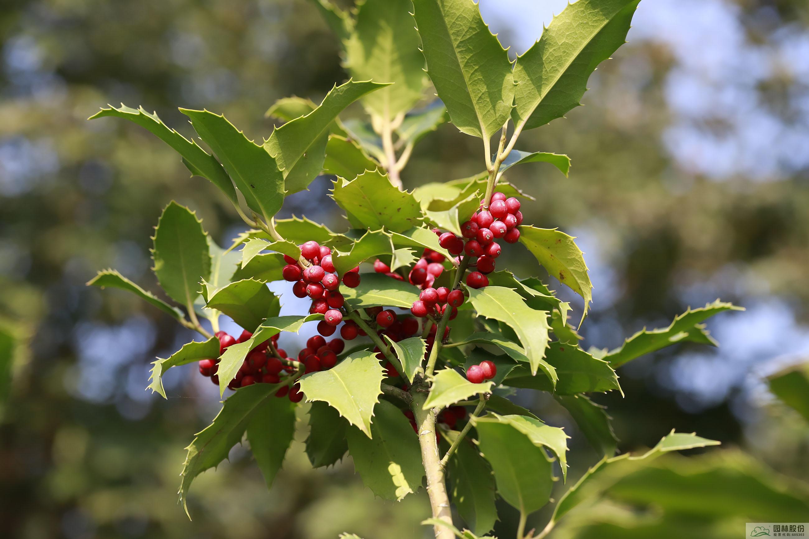 本品種為品種阿拉斯加Ilex aquifolium 'Alaska'種子繁育的實生苗中選育而得。常綠喬木,雌株,植株圓錐狀,幼枝褐紅色。幼葉紅褐色,老葉綠色。葉片厚革質(zhì),矩圓形,葉緣波狀起伏,密布中等深度的小刺齒。花期4月中上旬,雌花黃綠色。果紅色,掛果期為10中下旬至11月中上旬。