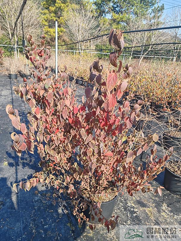 忍冬科莢蒾屬,落葉灌木,全株被毛?;ò咨?,量大,花期4月。果紅色,量通常較小,果期10-12月。秋季葉色變暗紅,通常11月開始變色,12月至次年2月達到最佳觀賞效果。病蟲害較少,生長速度快,且耐寒,通常雪期還未落葉。植株極耐修剪,適合工程應(yīng)用或庭院觀賞。