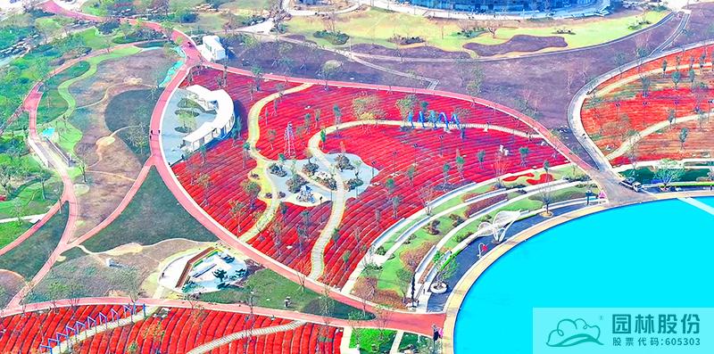 位于項目中心的天空花湖占地面積約27萬平方米,以水環(huán)、外環(huán)及花瓣環(huán)作為構(gòu)成花海的主要結(jié)構(gòu)體系,溪水環(huán)繞花海外圍形成花溪景觀。水環(huán):即天空之鏡,由一片圓形淺水水面作為花海的核心區(qū)域,天水一色,行人在其上猶如在大型的鏡面游走?;ò戥h(huán):作為花海的主要元素“花瓣”,以有“英雄花”之稱的火星花作為主要片植品種,同時采用多種觀賞性花卉,如紫絨鼠尾草、矮生馬鞭草、郁金香、三角梅、粉黛亂子草等花帶打造充滿活力的花海景觀。外環(huán):圍繞“飄落的花瓣”設(shè)計主題甄選花卉品種,采用相同花期的紅粉色為主的多年生花卉片植方式,渲染烘托中心花海的熱烈氣氛,以綠色草坪作為襯托花海的底色,引導(dǎo)游人近距離打卡觀賞。
